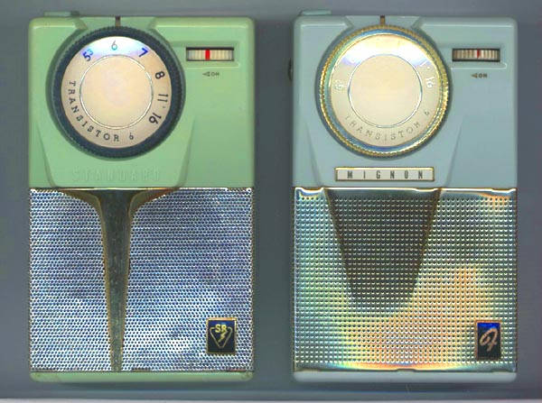 In terms of cabinet design, the Standard "Mignon" was a huge improvement in every possible way over the SR-F22. A much better plastic was used for the cabinet itself, with a much more lustrous and appealing shade of green; the tuning dial was spared that awful dark green plastic rim; and the cabinet / grill face was given a less zany and more dignified styling.