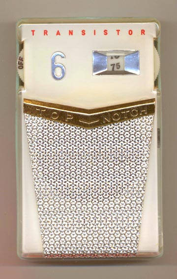 This shirtpocket radio shares something in common with that very "top notch"-looking Standard SR-H204 / Jefferson-Travis JT-H204 coatpocket set: each radio has reverse-painted plastic covering its entire face and surrounding the grill, pretty unique and unusual.