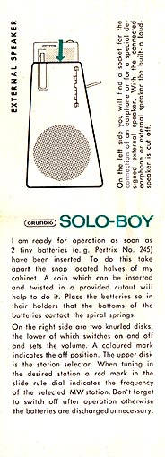 1961 Grundig Solo-Boy 201 and instruction guide:
