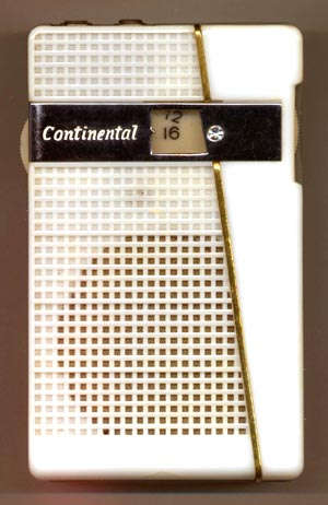 From 1958, a very early Japanese transistor radio, made by Sharp, Japan's first electronics manufacturer, a company dating back to the 1920s... As with nearly all CD-era Sharp and Continental radios that I've seen, the tuning dial on this set lacks CD marks.