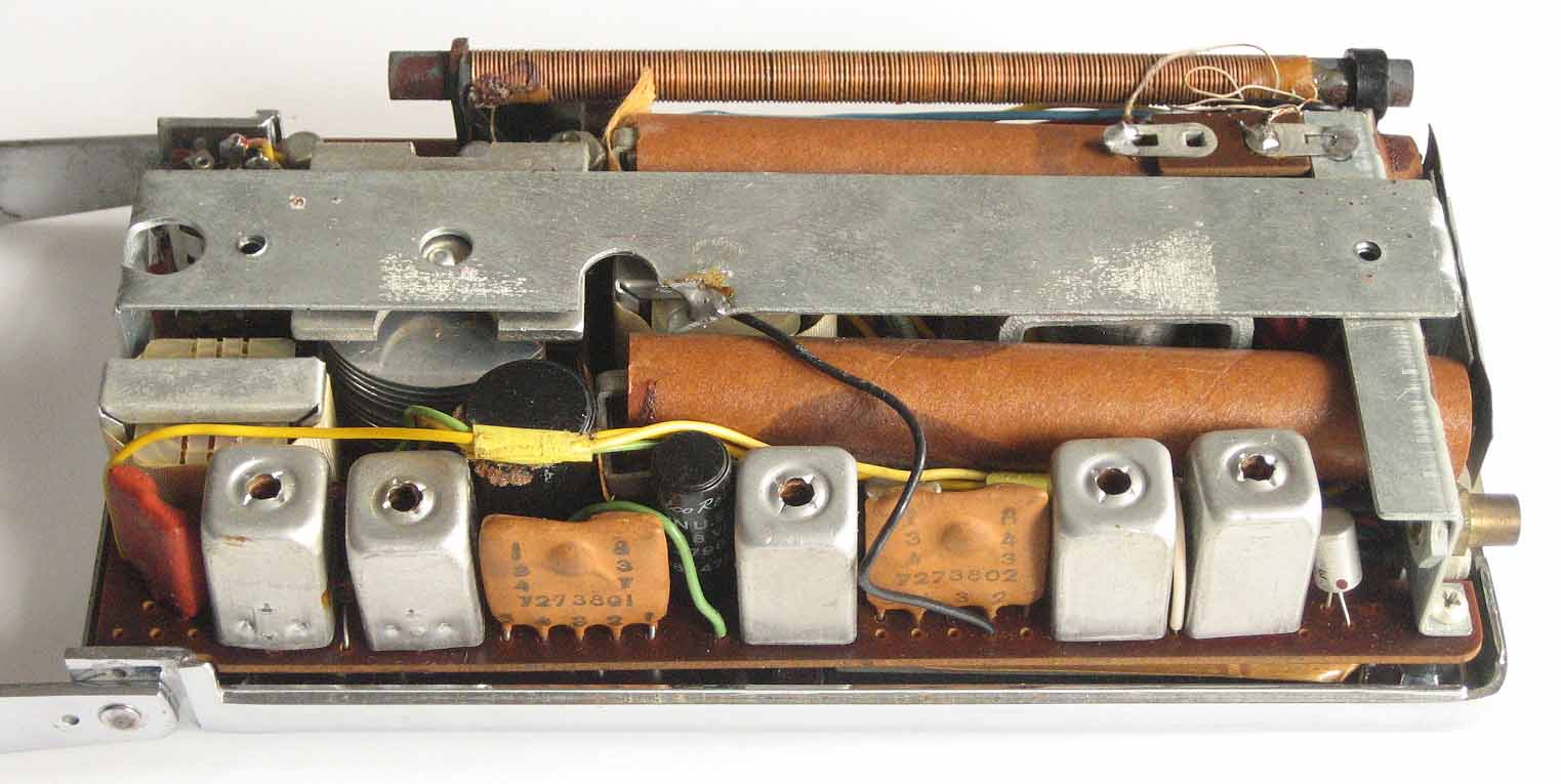 One of a number of "transportable" radios made by Delco for GM cars at the time, including Oldsmobile, Pontiac and Buick models. All of these were seated in their car's dashboard or underneath it. When plugged in, the radio was powered by the car's battery and the tuning shifted to push-button tuning on the dashboard. And a bonus was that they could be removed from the dashboard to become portable.